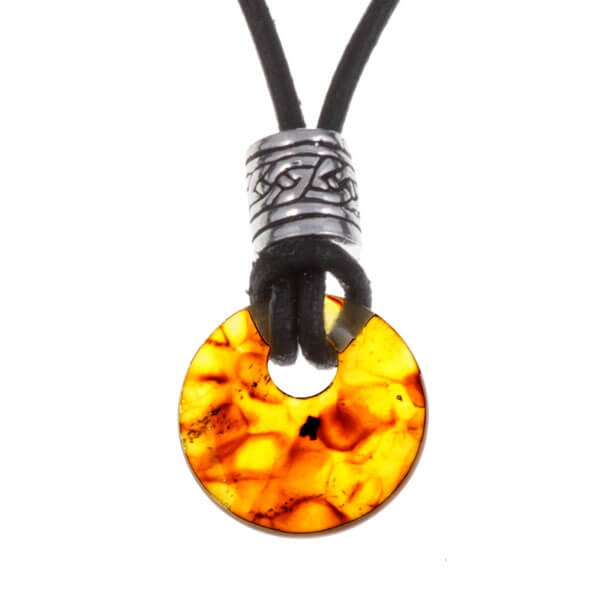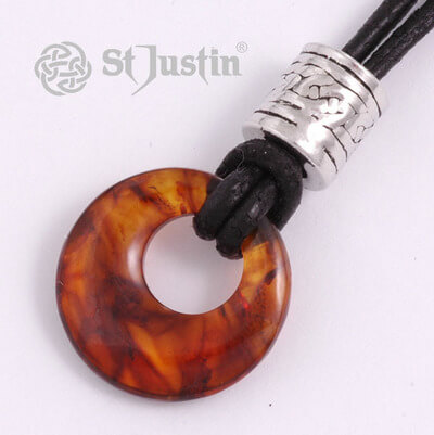 Calm and Serenity – Amber is fossilised tree resin and is thought to benefit the brain function, the nervous system and cell regeneration. The energy of amber is soothing, relaxing, flowing and creative. If worn at night, it can promote peaceful dreams. Height, 20mm, Width, 20mm, Amulet incl.black string rejustable on every size. Come in a St.Justin gift box.