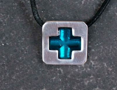 Blue Enamel Cros<BR> st justin, Material : Pewter, Height, 20mm, Width, 20mm, Amulet incl.black string rejustable on every size. Come in a St.Justin gift box.