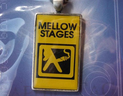 Pendant text : Mellow stages Height, 35mm, Width, 20mm, Graphic tag incl. zwarte veter verstelbaal op gewenste lengte