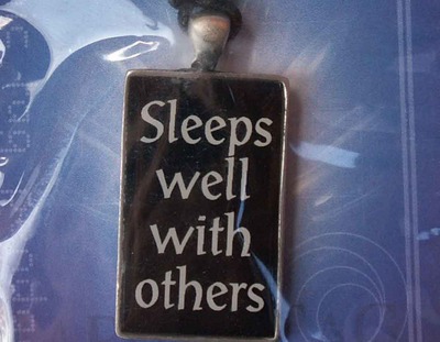 Pendant text : Sleeps well With others Height, 35mm, Width, 20mm, Graphic tag incl. zwarte veter verstelbaal op gewenste lengte