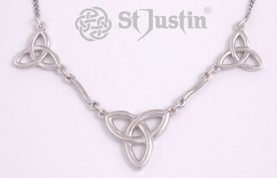 st justin, Material : Pewter, Height, 25mm, Width,120 mm, chain length, 40cm Pendant come in a St.Justin gift box.