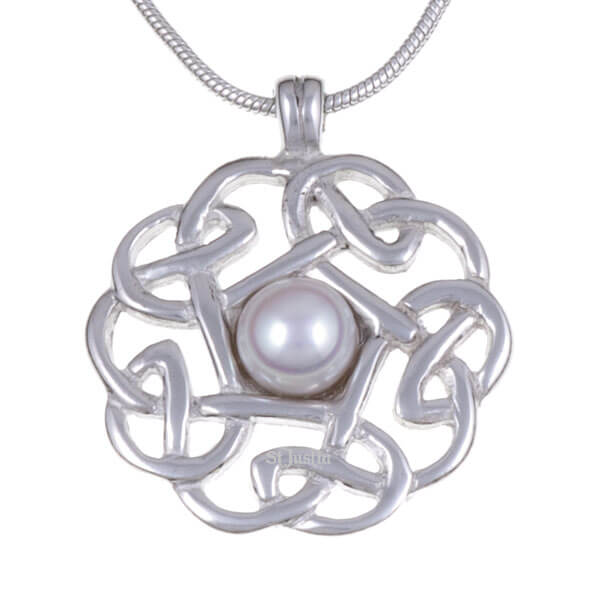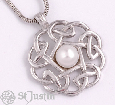 st justin, Material : Pewter, and freshwater pearl Height, 30mm, Width, 30mm, chain length, 45cm Pendant come in a St.Justin gift box.