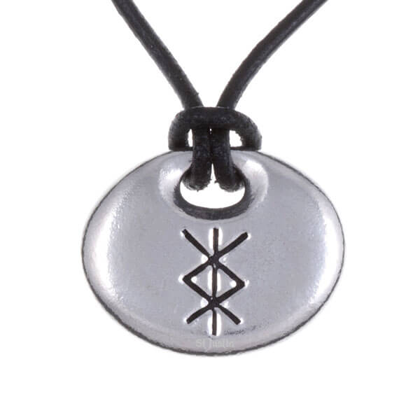 The splayed hand of Algiz is warding off adverse force and combines with Sowulo the lifeforce, enabling the wearer to generate inner strength.