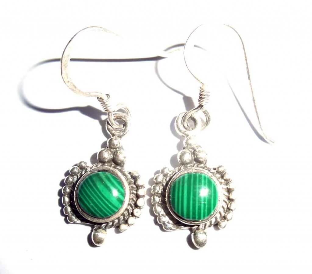 Silver earrings with malachite (GU1) Tsafi Nelken 10 jaar geleden Material: Sterling Silver 925, Stone: Malachite Height (incl. hook), 30mm, Width, 11mm, Weight 3 g