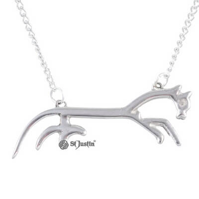 Brand : st justin, Material : Pewter, Height, 16mm, Width, 48mm, chain length, 45cm Pendant come in a St.Justin gift box.